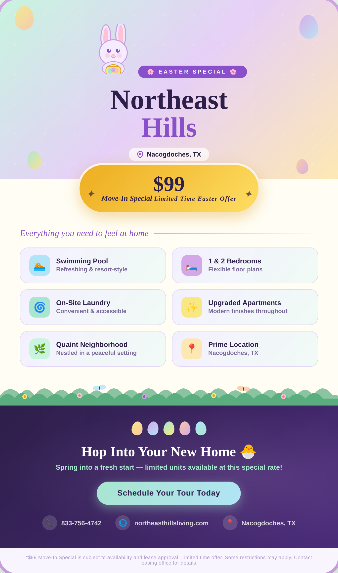 The benefits don't stop at your front door. Unwind after a long day by relaxing at the shimmering swimming pool, and we also have two laundry facilities for your convenience. At Northeast Hills apartments in Nacogdoches, TX, we strive to provide corporate housing for the area and top-notch customer service. Call to schedule a tour today and see why we're the best place to call home!
